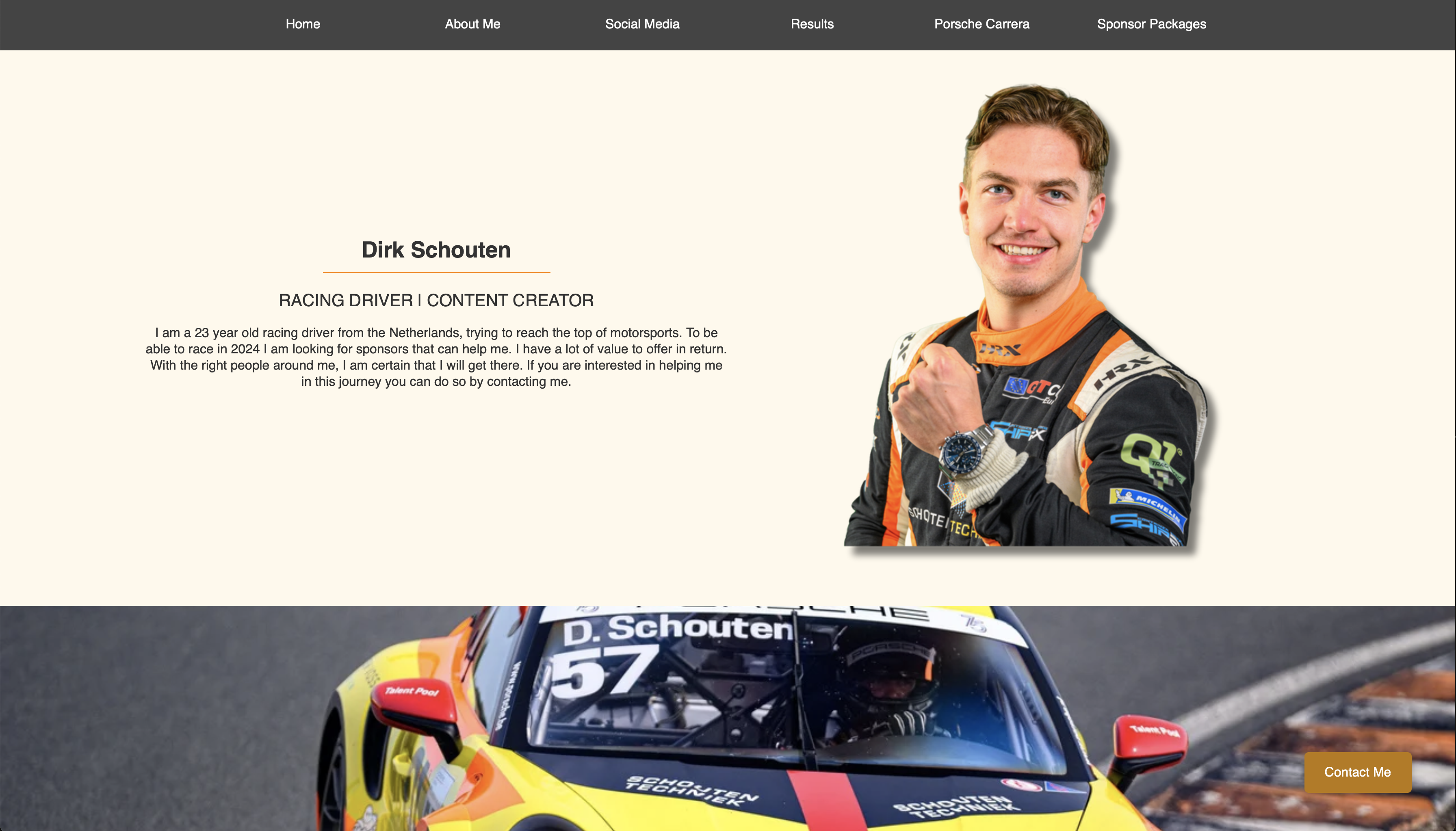 This project is an unofficial fan remake of Dirk Schouten's original website. It serves as a showcase of my web development skills, recreating the visual and structural design while using selected images and text from the original source for demonstration purposes. After following Dirk for a while and witnessing both his first win and his first championship live, this project became necessary.